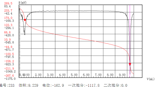 突躍量的選擇:經過試驗,發現鹽酸金剛烷胺滴定時溶液第二終點電位突躍不很明顯,故選擇突躍量時應特別注意。(建議**終點突躍量:500 第二終點突躍量:150。)